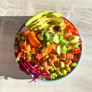 When it’s time to eat, simply grab your prepped ingredients, assemble the poke bowls, and drizzle with the sauce. For the freshest results, store each component separately and keep the sauce on the side until you’re ready to eat. This will ensure everything stays crisp and flavorful throughout the week. The prepped ingredients can last in the fridge for up to 5 days, making it an easy, grab-and-go meal option!